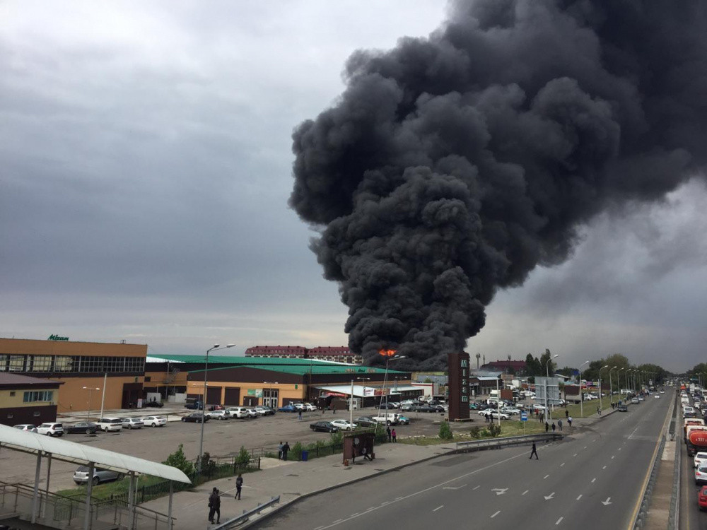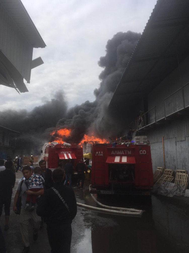 Сообщение о пожаре поступило в 13:45, передает BaigeNews.kz. Изначально в ДЧС распространили информацию, что горит склад на рынке "Мизам", но позже в департаменте пояснили, что пожар не имеет отношения к рынку "Мизам". Между рынками - отдельная территория складов оптового хранения.