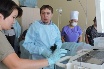 В рамках чемпионата участники провели на муляже качественную колоноскопию.