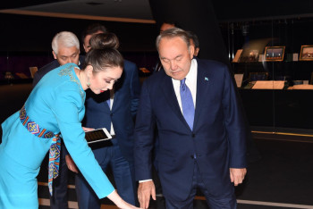 Нурсултан Назарбаев ознакомился с представленными экспонатами и побеседовал с находившимися на экскурсии студентами Карагандинского государственного технического университета.