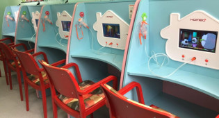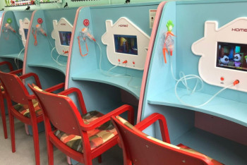 В современной комнате маленькие пациенты могут не только получать терапию, но и смотреть мультфильмы.