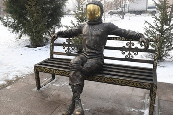 Памятник Гагарину появился на одной из скамеек в Алматы