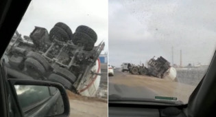 Газовоз перевернулся на трассе возле Актау