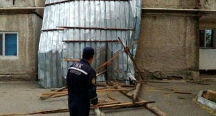 Сильный ветер сорвал кровлю пятиэтажного дома в Таразе