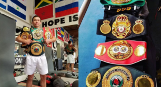 Казахстанский боксёр принял участие в фотосессии в США, продемонстрировав свои пояса.