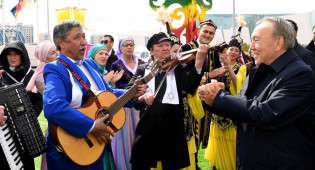 Назарбаев и Сагинтаев станцевали на площади Независимости в Астане