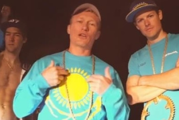 Александр Винокуров и гонщики "Астаны" попробовали себя в роли рэперов