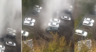 Фонтан горячей воды залил припаркованные авто в Алматы
