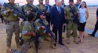 Президент России Владимир Путин сфотографировался с солдатами спецназа Бразилии, которые охраняли его во время визита в страну. Изображение опубликовано в Telegram-канале журналиста кремлевского пула Дмитрия Смирнова "Пул N3".