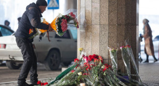 Мужчина пытался забрать цветы, оставленные у входа в аэропорт в память о погибших
