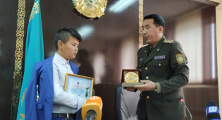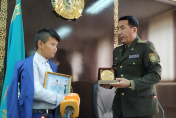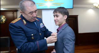 Министр внутренних дел Ерлан Тургумбаев наградил десятиклассника Надира Омаргазиева, который спас упавшего в колодец ребенка в Астане.