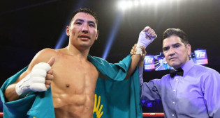 Жанибек Алимханулы уверенно выиграл титулы чемпиона WBO и WBC