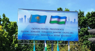 На центральных улицах столицы Узбекистана установлены различные баннеры с казахстанской символикой и текстами на казахском и узбекском языках.