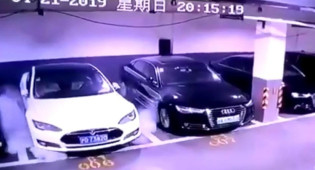 Взрыв автомобиля Tesla на парковке в Китае попал на видео