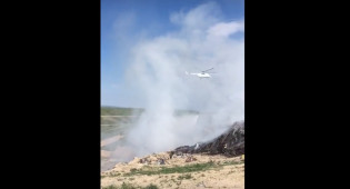 Два вертолета тушат пожар на мусорном полигоне близ Алматы