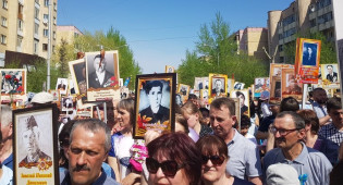 По центральным улицам Петропавловска прошли с фотографиями героев около четырёх тысяч североказахстанцев.
