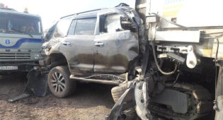 ДТП произошло в 3 км от Кокшетау с участием джипа Land Cruiser и асфальтоукладчика.