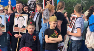 Тысячи горожан с дорогими для них портретами шли в колоннах и вспоминали о своих героях.