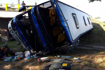Пассажирский автобус упал с моста развязки в Алматы