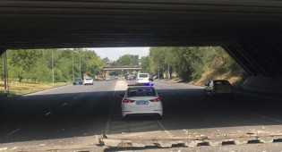 В Алматы на проезжую часть упали фрагменты бетонной облицовки моста