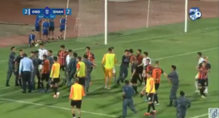 В матче "Ордабасы" - "Шахтер" вспыхнула потасовка.