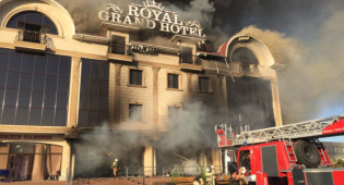 От взрыва груженного газовыми баллонами ЗИЛа загорелся элитный отель в Туркестане