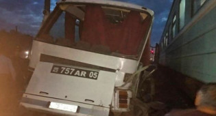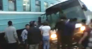 Поезд Алматы-Костанай столкнулся с автобусом в Алматинской области