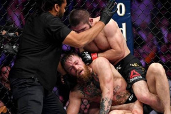 Выскочил из клетки и побежал к отцу: Как Хабиб отметил победу