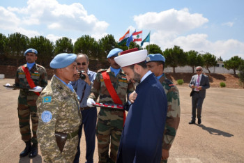 На обратной стороне медали, которая отмечает факт участия в миссии ООН, расположена рельефная надпись "IN THE SERVICE OF THE PEACE", что означает - "На службе мира".
