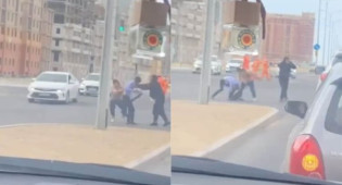 Девушка на видео жестоко избивала парня — видимо, ее не пугали ни дорога, ни проходящий рядом поток автомашин. Молодой человек пытался ответить ударом на удар, однако эти попытки оказались тщетными.