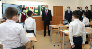 Токаеву показали дежурные классы в новой школе Караганды