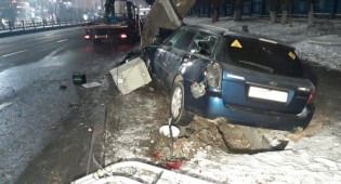 Автомобиль снес столб с камерами "Сергек" в Алматы