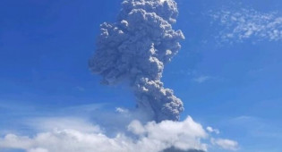 По словам очевидцев, вулкан выбросил в воздух столп пепла и дыма, который поднялся примерно на пять километров над кратером.