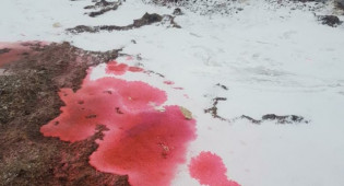 Вода окрасилась в красный цвет вдоль побережья в Актау
