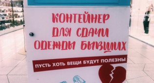 В одном из торговых центров города организаторы благотворительной акции установили специальные контейнеры, куда все желающие могут сложить вещи своих бывших возлюбленных. Вся соб