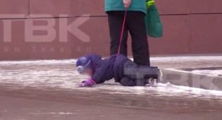 Женщина привязала плачущего ребенка к поводку и потащила по асфальту