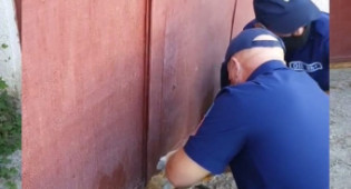 Измученная собака почти сутки пыталась вырваться из под тяжелых ворот.
