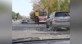 Курьер на коне попал на видео в Алматы
