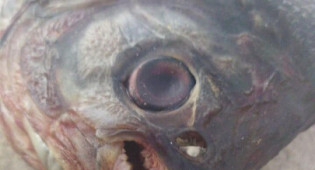 "Рыба большая, размером в пятилитровую баклажку, весом в 1300гр, похожа чем-то на леща. Жабры посмотрел — красные. Открыл р