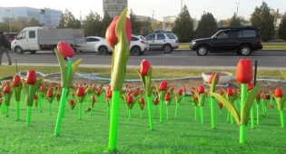 Чиновники решили украсить центр города пластиковыми тюльпанами. Стоимость проекта составила 15 миллионов тенге, выделенных из бюджета.