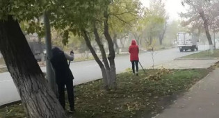 О вопиющем случае стало известно благодаря жительнице Семея. Она сфотографировала школьных учителей, убирающих городские улицы. Автор снимков рассказала журналистам, чт