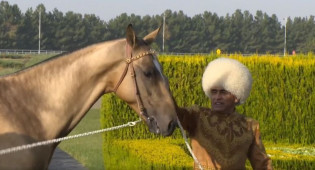 "В ходе посещения конного комплекса в Ашхабаде Президент Туркменистана Гурбангулы Бердымухамедов подарил Президенту Казахстана Касым-Жомарту Токаеву чистокровного ахалтекинского жереб