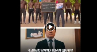Видео с "приветом" из Африки появилось ранее в социальных сетях. Группа парней поблагодарила его за тюльпаны, по всей видимости – пластиковые цветы, появи