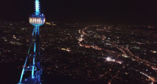 Телевышка на горе Мтацминда - самая высокая точка в Тбилиси. В честь праздника она засветилась небесно-голубым