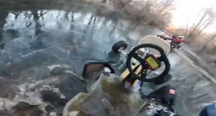 Экстремальный заезд: картингист провалился под лед