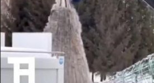 Рабочего привязали к крану для украшения елки в Нур-Султане