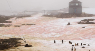 В розовый и зеленый цвет окрасился снег в Антарктиде