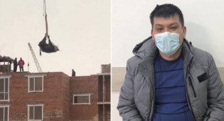 Корову подняли на кране на крышу строящегося ЖК в Нур-Султане