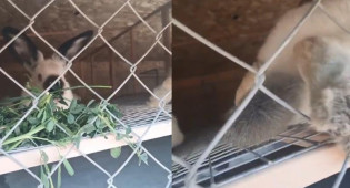 "Мертвые кролики лежат в клетках, один живой. Мы дали ему травы. С черепахой поступили жестоко - перепонки прикле