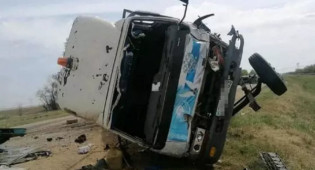 Два грузовика раздавили легковушку на трассе в Алматинской области