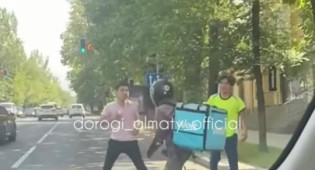 В Алматы прямо на проезжей части произошла драка между курьером Wolt и двумя неизвестными мужчинами, передает BaigeNews.kz. Видео появилось в Instagram.
